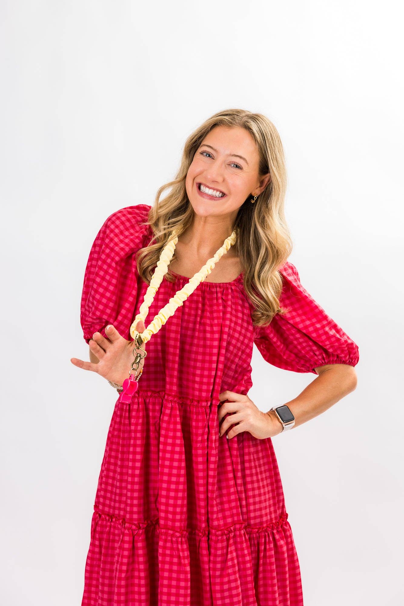 This adorable yellow lanyard is from our collaboration with Katie Lynn Teaches (@katielynnteaches on Instagram). It's made out of a tiny checkered textured fabric for some extra oomph, and is the perfect pop of color for your classroom; it'll add a flare to all your outfits! Gone are the days of full hands with no pockets; our comfy lanyards give you one less thing to worry about.